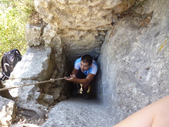 Il y en a une (plus loin) où l'on peut passer dedans avec une corde ... dommage on croyais quelle était au bord du chemin : un conseil regarder et lire les topos (il y a une photo sur la rando de Visorando) . En tout cas nous on retournera juste pour trouver la conduite...
